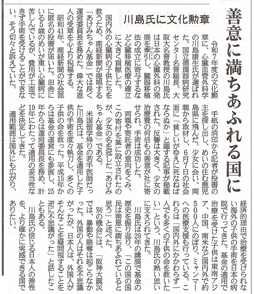 | 神戸新聞 2020年7月2日 ”風が奏でる命の賛歌” 高8期 新宮 晋 氏 |