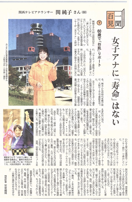 | 読売新聞 2023年8月16日 地域頁(大阪)掲載記事 岸谷 由紀子 氏(高校6期) |