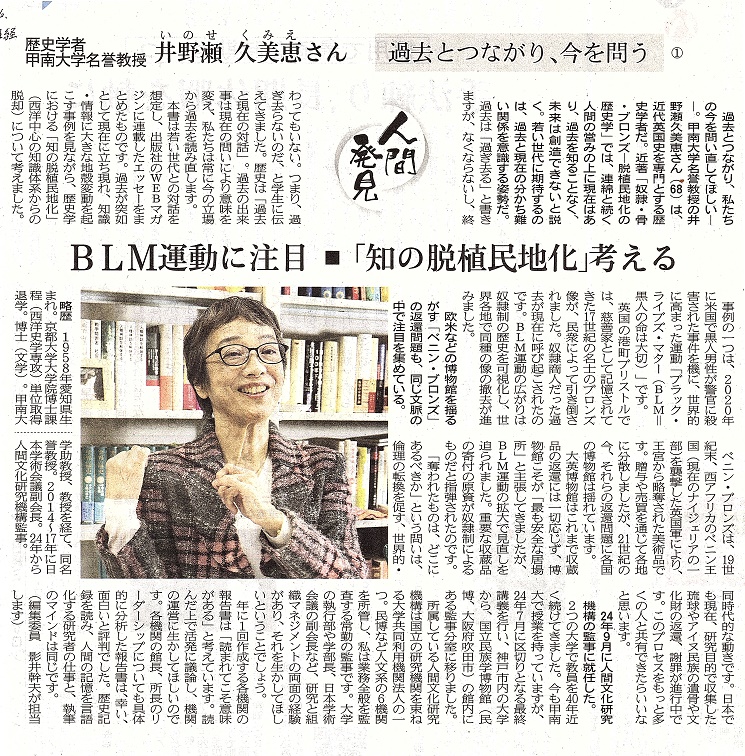 | 日本経済新聞 2026年3月9日~13日 夕刊連載 井野瀬 久美恵 氏 (高校28期) ①~⑤PDF こちらからご覧ください |